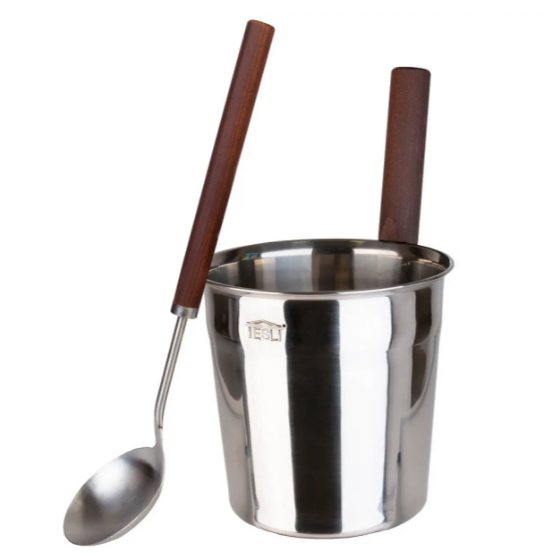 Шайка в поєднанні з черпаком допоможе вам повною мірою насолодитися всіма принадами сауни. Ручки обох предметів виконані з термодерева, яке не дає їм нагріватися у парній та підкреслює чудовий дизайн.
